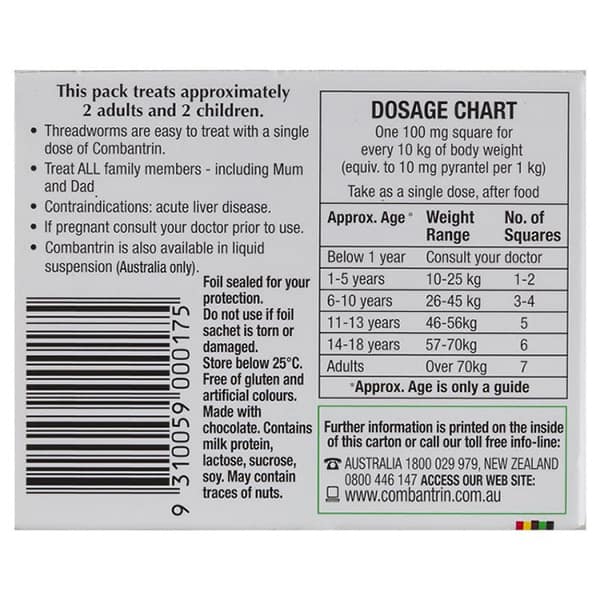 Thuốc tẩy giun Combantrin vị socola 24 miếng của Úc - Tẩy mọi loại giun hiệu quả, tiện dụng