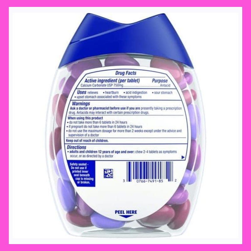 ➤ Viên nhai Tums có nguồn gốc lành tính, an toàn, không chứa phẩm phụ gia độc hại. Calcium Carbonate hàm lượng 750mg vô hại cho cơ thể, không tác dụng phụ.