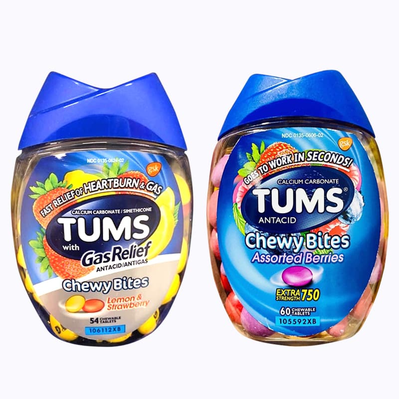 Nếu bạn đang có những vấn đề rắc rối về dạ dày, nhất là ợ nóng, khó tiêu, thì Tums chắc chắn giúp ích nhiều cho bạn. Phiên bản Tums Chewy Bites như kẹo dẻo cực ngon, hộp nhỏ gọn dễ mang theo nên rất được yêu thích. Sản phẩm đạt tiêu chuẩn Mỹ đang được phổ biến tại nhiều nước trên Thế giới.